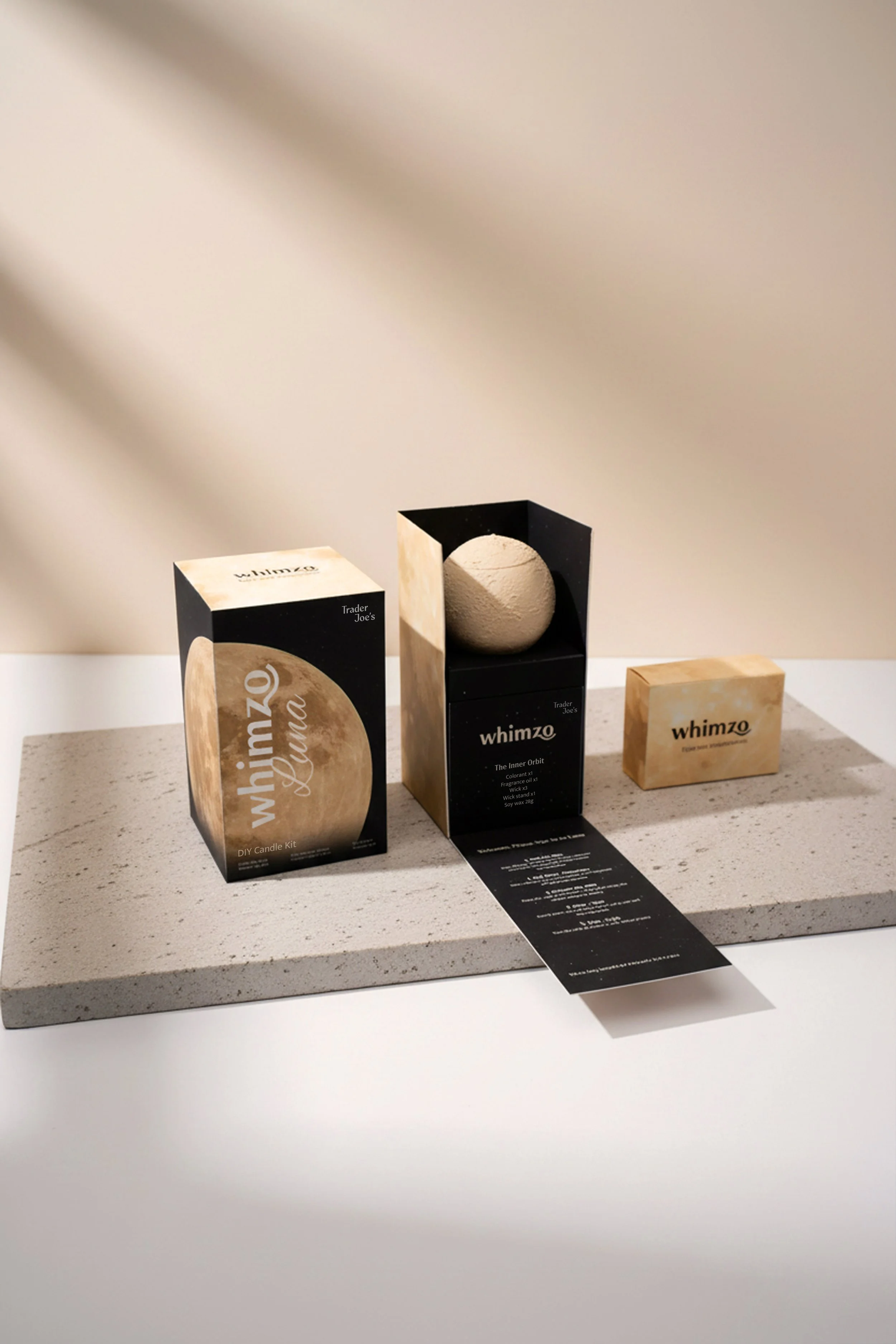 Whimzo’s packaging is designed as an extension of the brand’s imaginative world. Using tactile materials like ceramic, stone-inspired textures, and recyclable paperboard, the packaging feels calm, approachable, and grounded. The design concept draws inspiration from planets, using soft forms, minimal typography, and subtle color palettes to create a sense of discovery without feeling literal. Each component is carefully considered to support an interactive, hands-on experience, turning the act of unboxing into the first step of exploration.